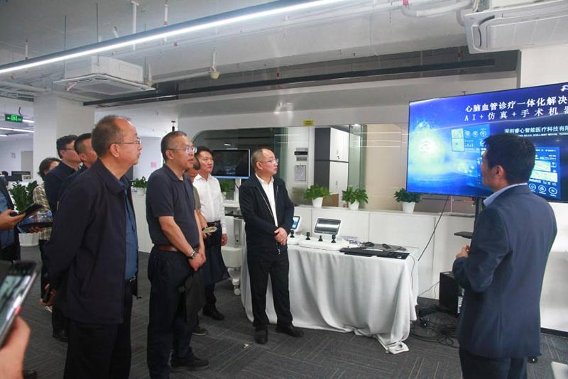 考察团参观了深圳市留学生创业园(国家级孵化器)、深圳市其域创新科技有限公司(3D立体建模企业)、深圳睿心智能医疗科技有限公司(人工智能手术机器人企业),了解企业发展现状及主流产品。随后,双方就高新区建设、产业园区建设、科技创新等问题进行交流,并深入探讨了新疆和深圳如何进一步密切合作,充分实现优势互补,互利共赢。