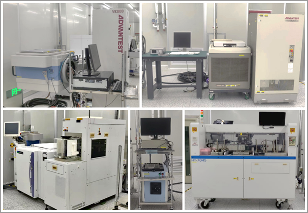 测试中心配备有千级洁净车间;有爱德万V93000 SoC、Chroma 3360P等测试机,TEL 12寸全自动探针台等中高端设备,以及R&S ZNB20矢量网络分析仪等多台高端测试仪表。为汇聚科技资源,进一步覆盖中小IC企业测试需求、推广国产测试设备的应用,测试中心还引进了悦芯、胜达克等国产测试系统,及森美协尔、金海通等多家国产测试资源。