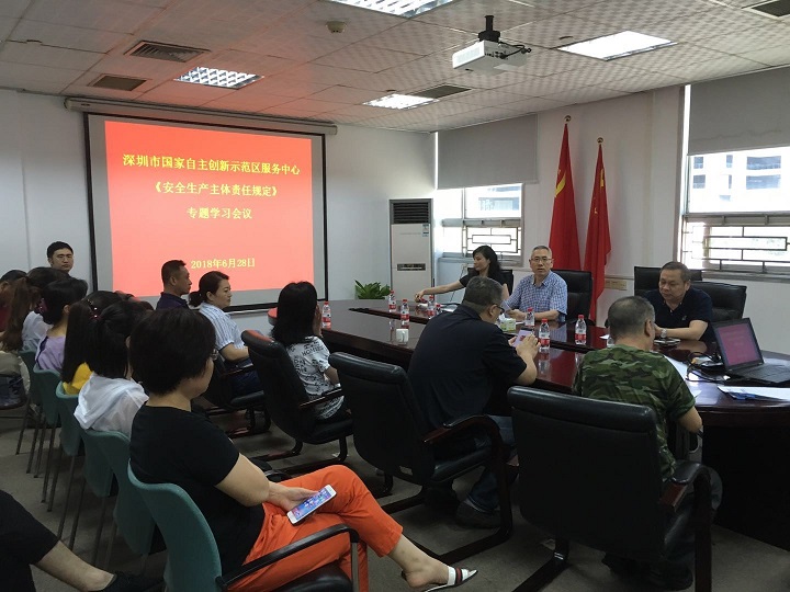 | 2018年6月28日,深圳市国家自主创新示范区服务中心召开全体人员关于《安全生产主体责任规定》为主题的“安全生产月”活动,全面推动今年安全生产各项工作落实,集中开展专题宣传、集中培训、警示教育,落实“一岗双责”, 提升全员安全素质,公示单位主要负责人签署的安全生产主体责任承诺书,为安全生产持续稳定发展奠定坚实基础。 深圳市国家自主创新示范区服务中心安委会 |
