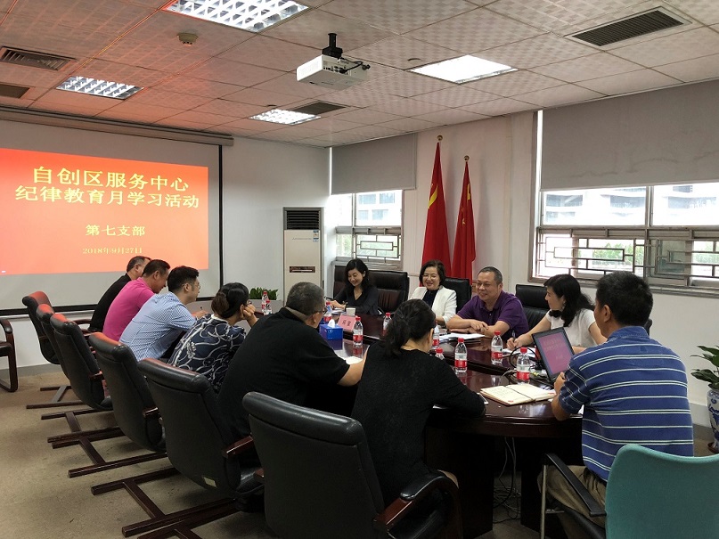 | 2018年9月27日上午,自创区服务中心党支部召开纪律教育学习月党员学习会,市科技创新委邱宣书记参加了学习会。 |