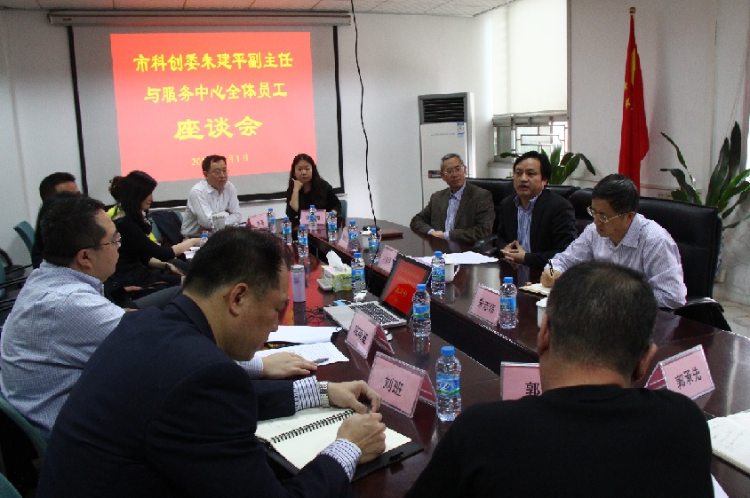 市科技创新委朱建平副主任与服务中心全体员工座谈会 2014/4/9 |