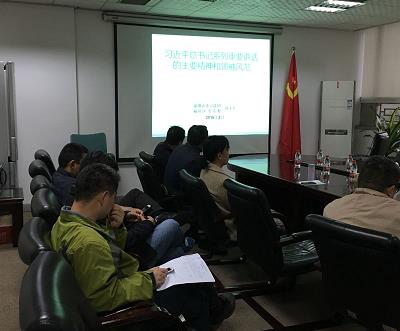 刘义军副校长重点介绍了习总书记系列讲话的重要精神及其鲜明特点。报告内涵丰富,分析透彻,帮助中心党员进一步加深了对习总书记系列重要讲话的理解和领悟。