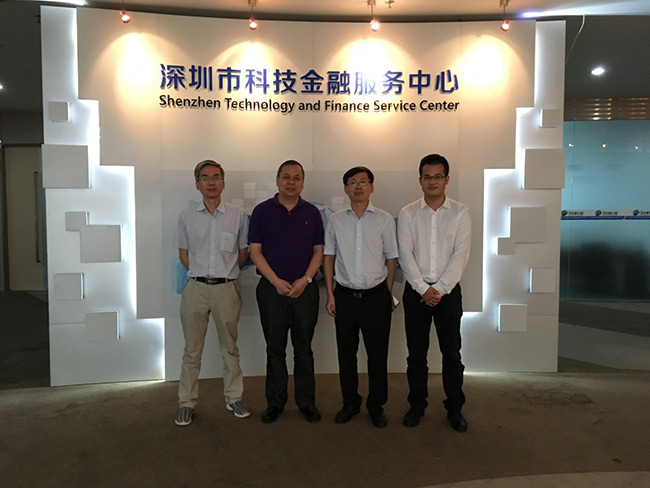 2017年7月13日下午,合肥国家高新技术产业开发区管委会副主任刘登银一行3人访问深圳市科技金融服务中心,了解我市科技金融工作。